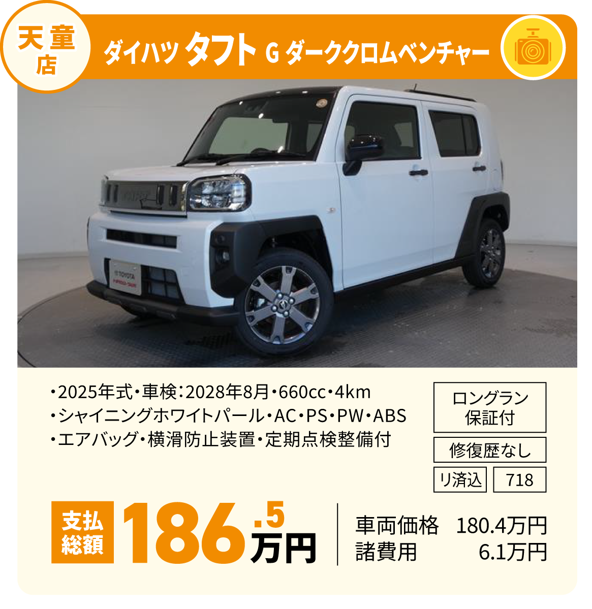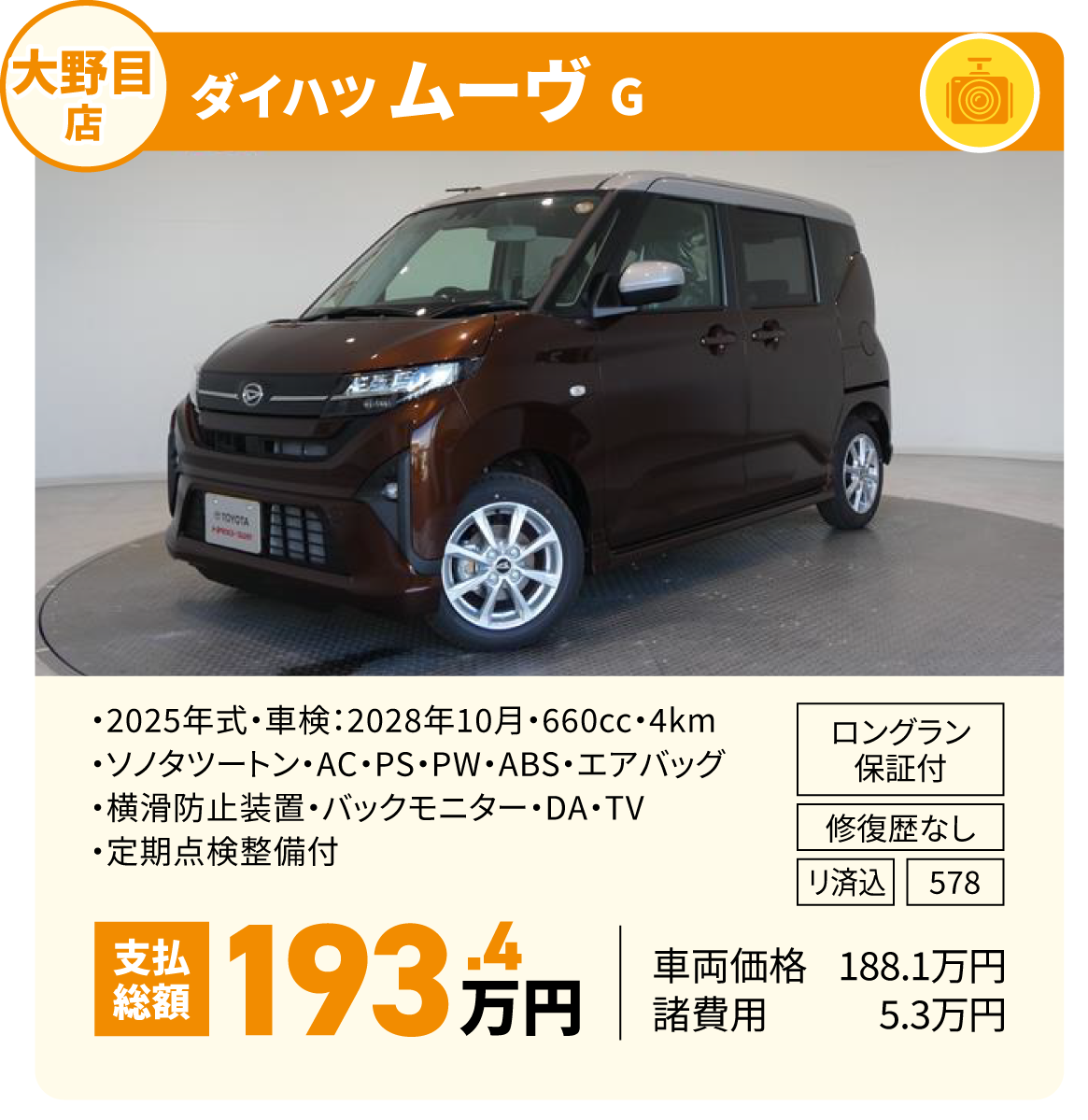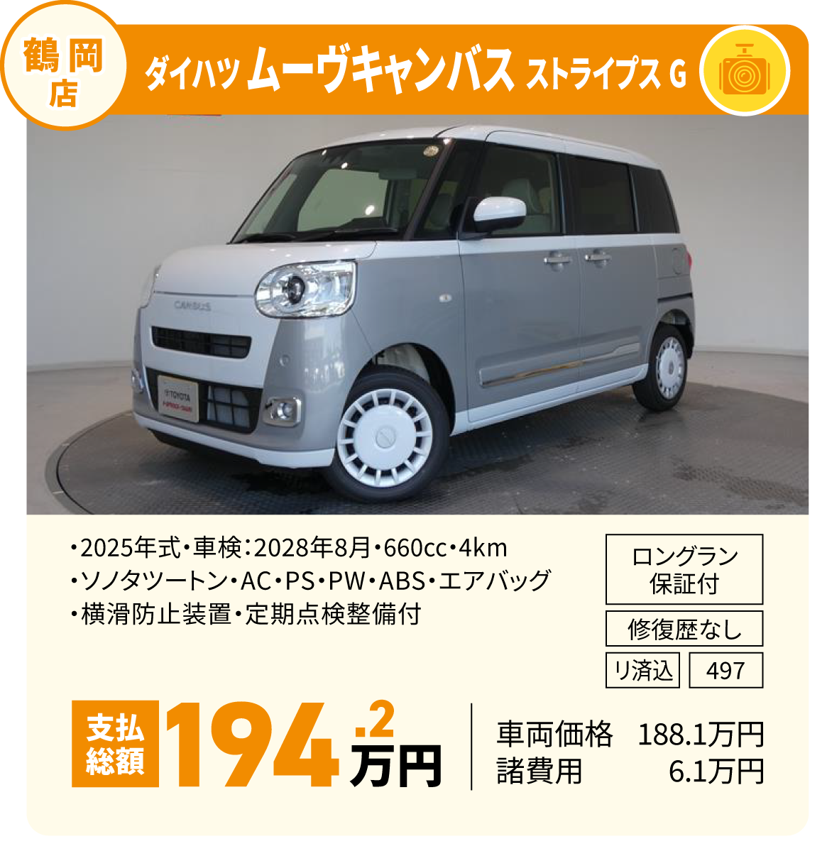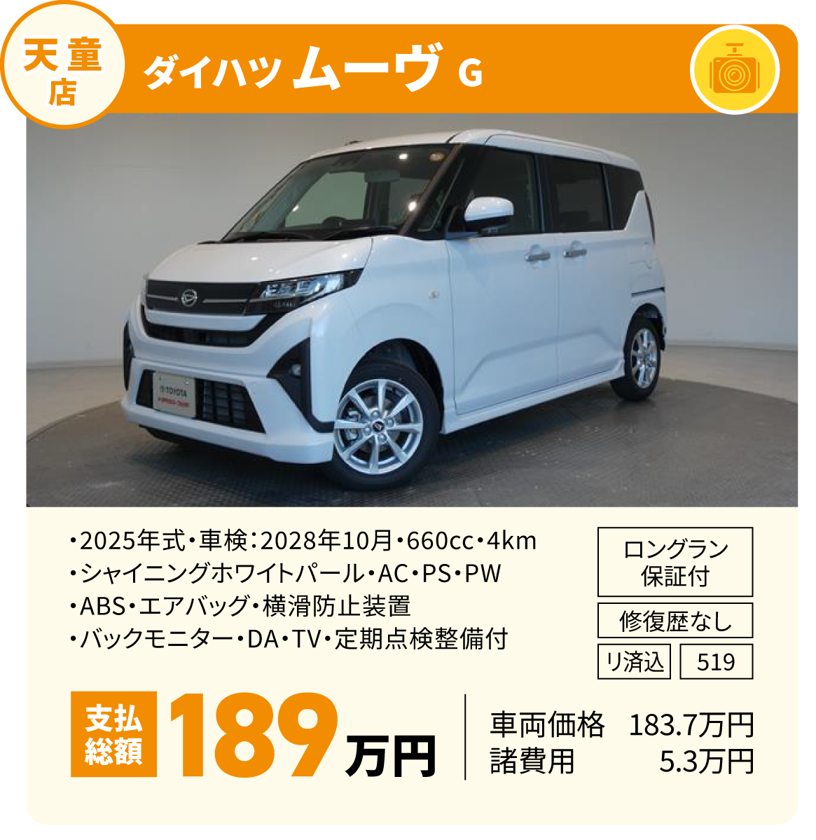 支払い総額は2025年10月現在、県内登録(届出)で店頭納車の場合の価格です。