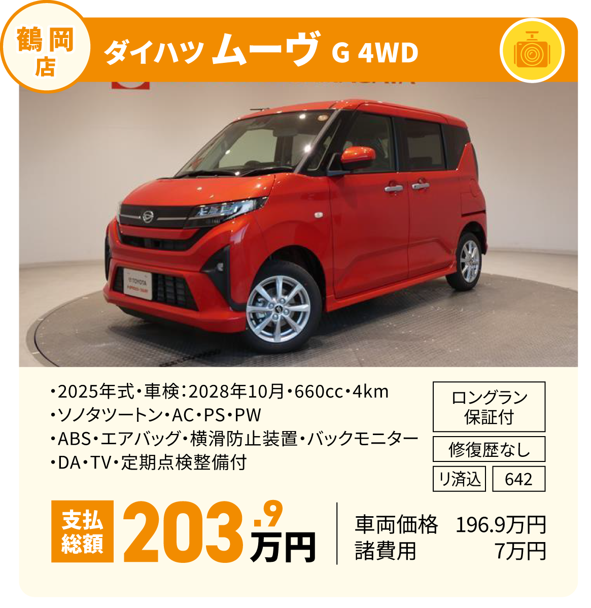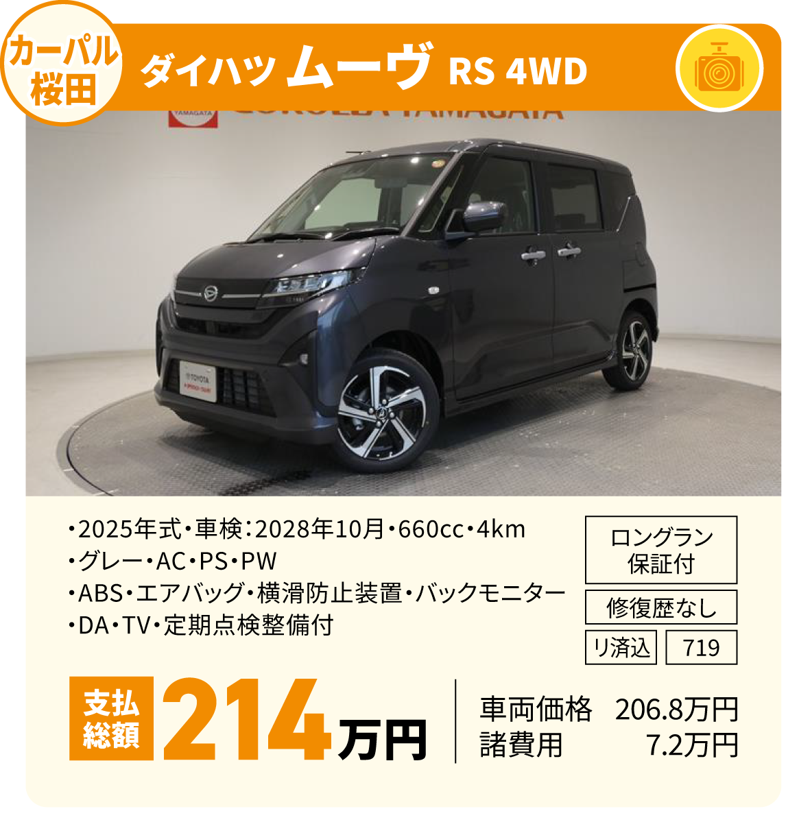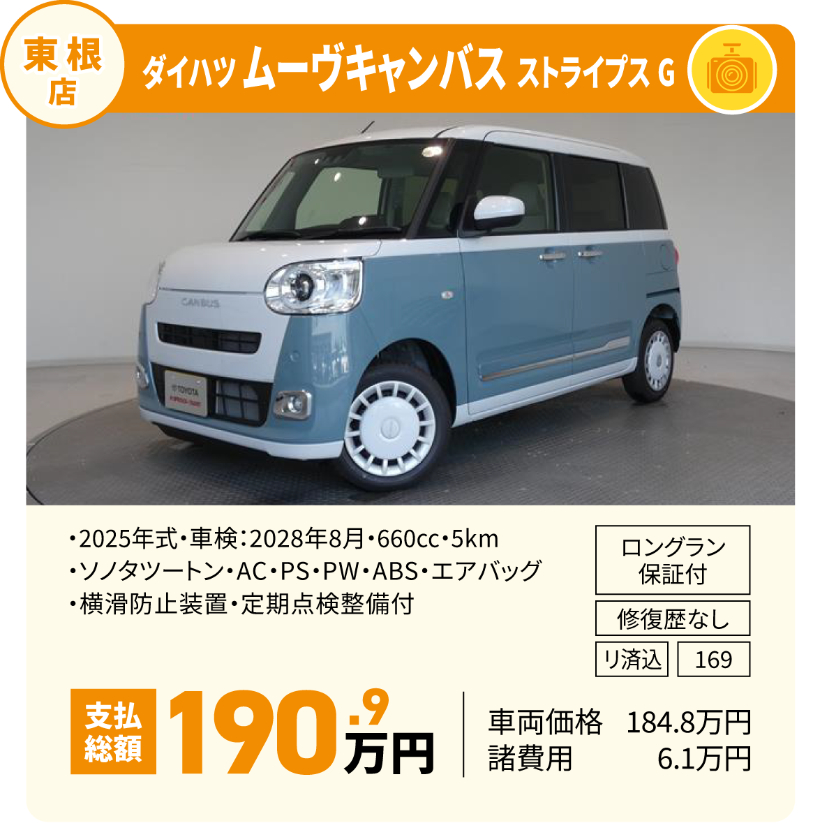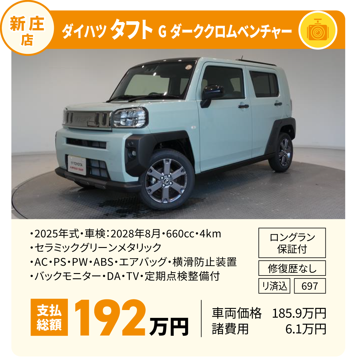 支払い総額は2025年10月現在、県内登録(届出)で店頭納車の場合の価格です。