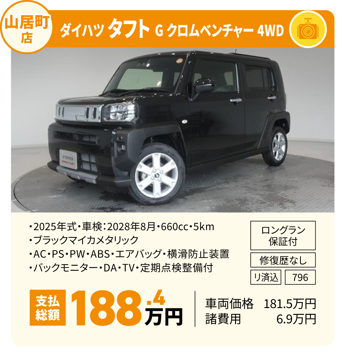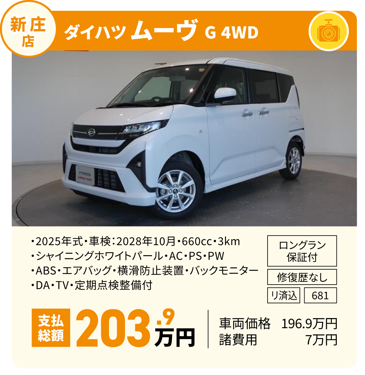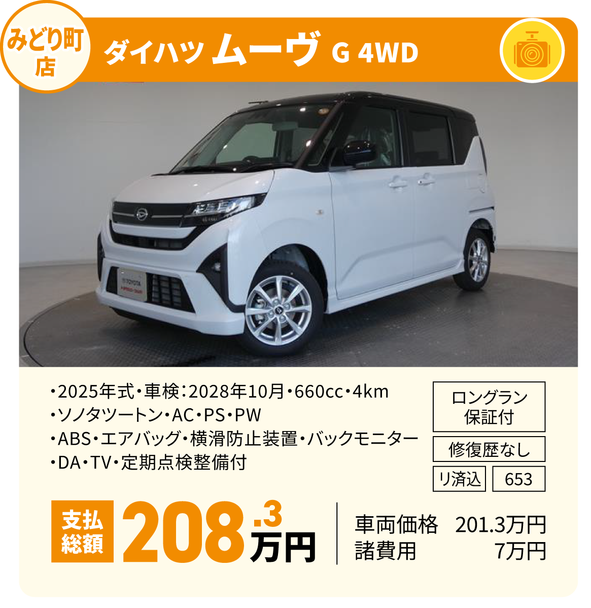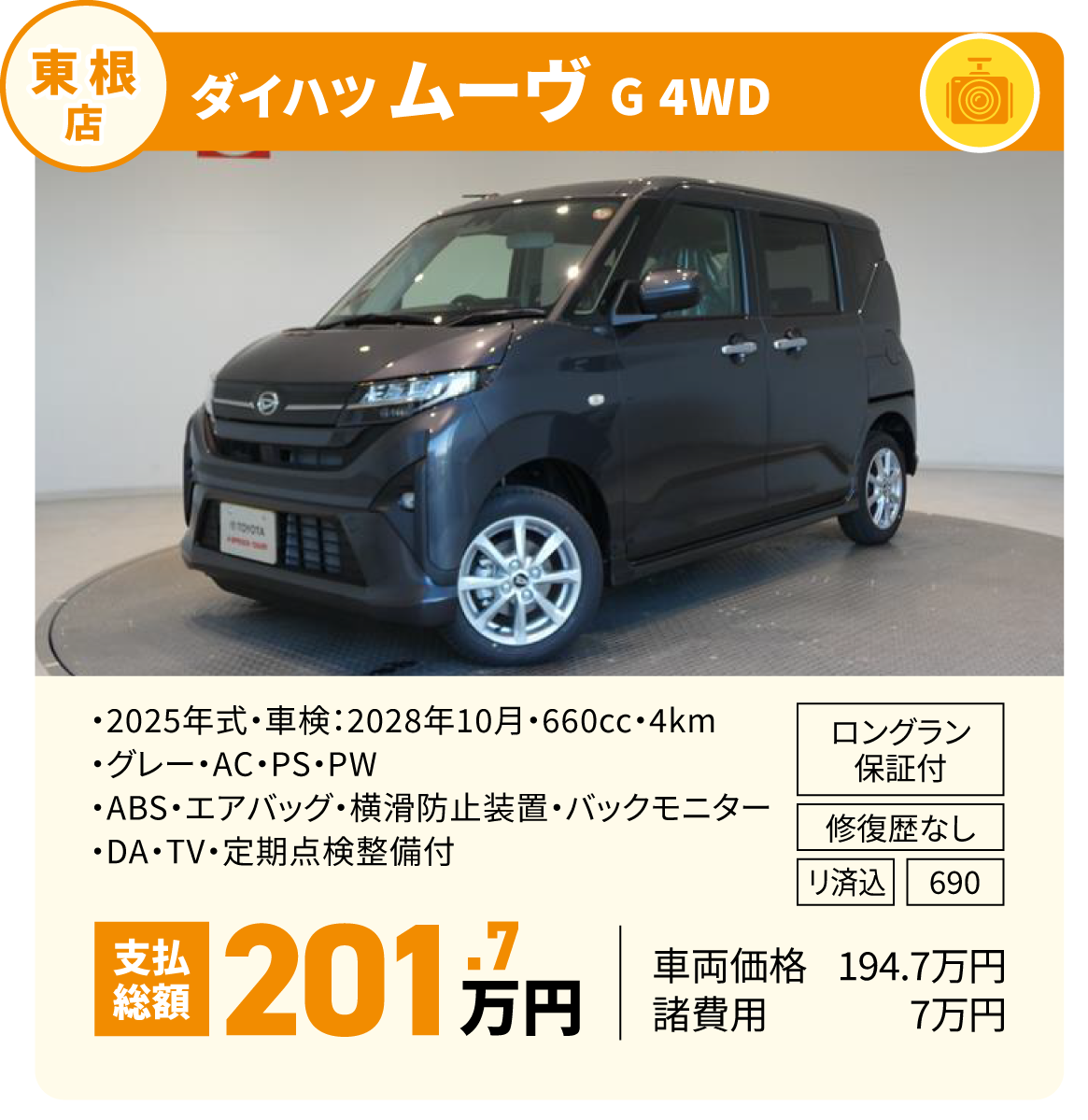 支払い総額は2025年10月現在、県内登録(届出)で店頭納車の場合の価格です。