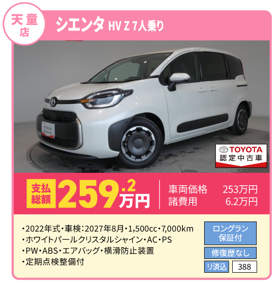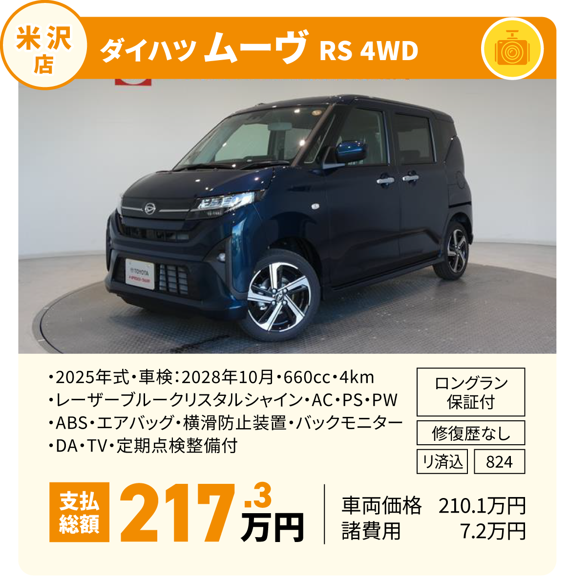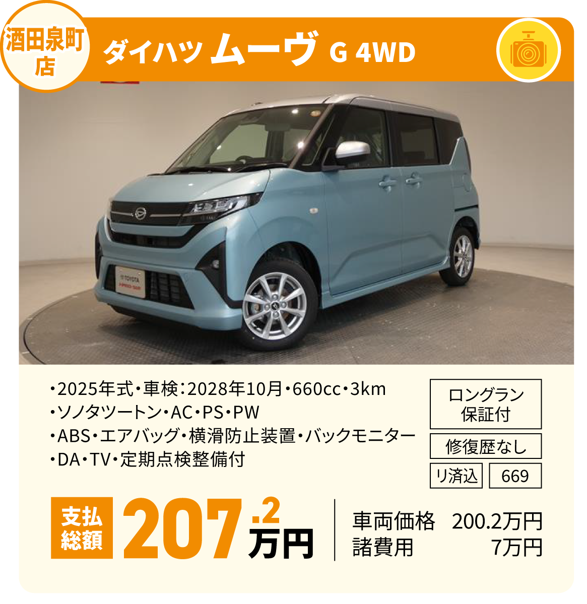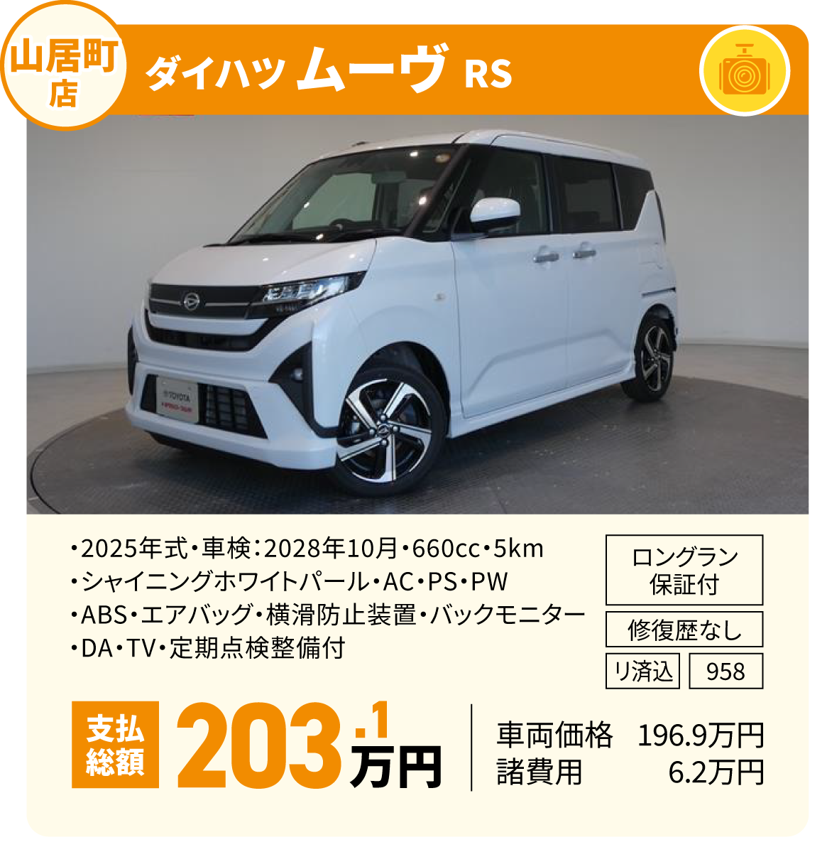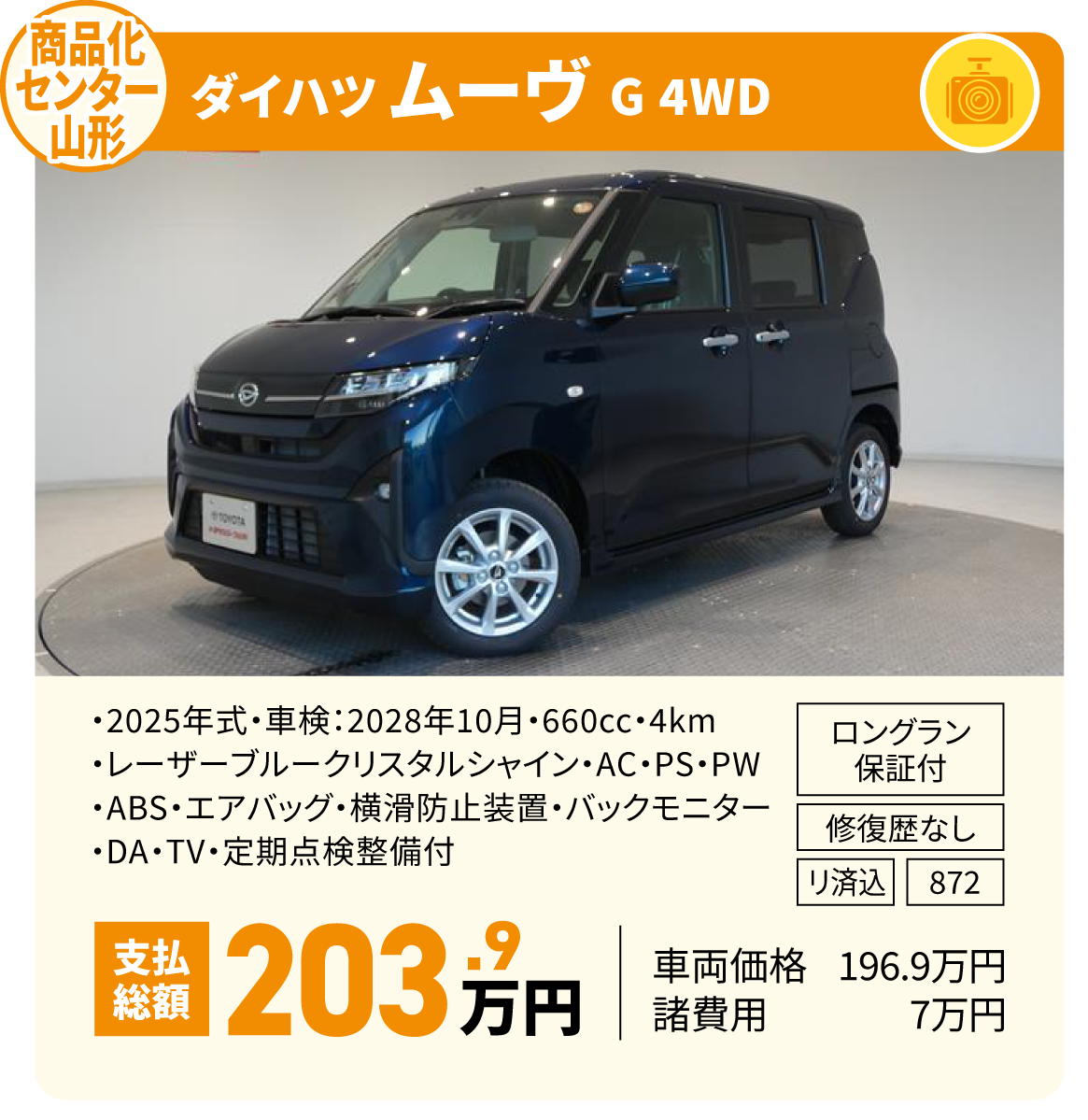 支払い総額は2025年10月現在、県内登録(届出)で店頭納車の場合の価格です。