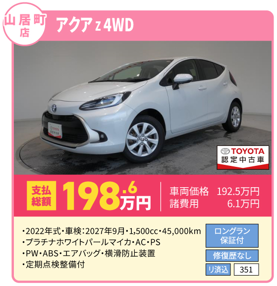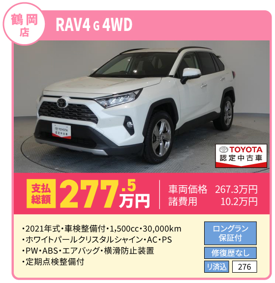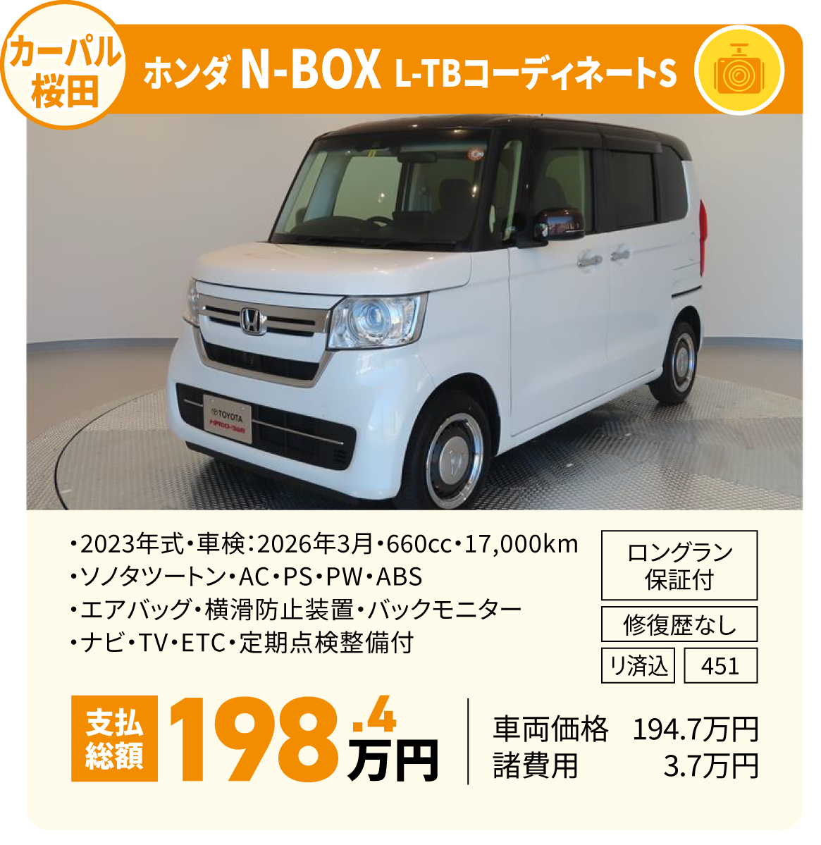 ※ロングラン保証付:1年間走行距離無制限の「ロングラン保証」が付いています。