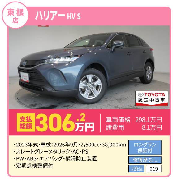 ※支払総額には、車両価格の他、保険料、税金、登録等に伴う費用、リサイクル預託金相当額等、購入時に必要な全ての費用が含まれています。