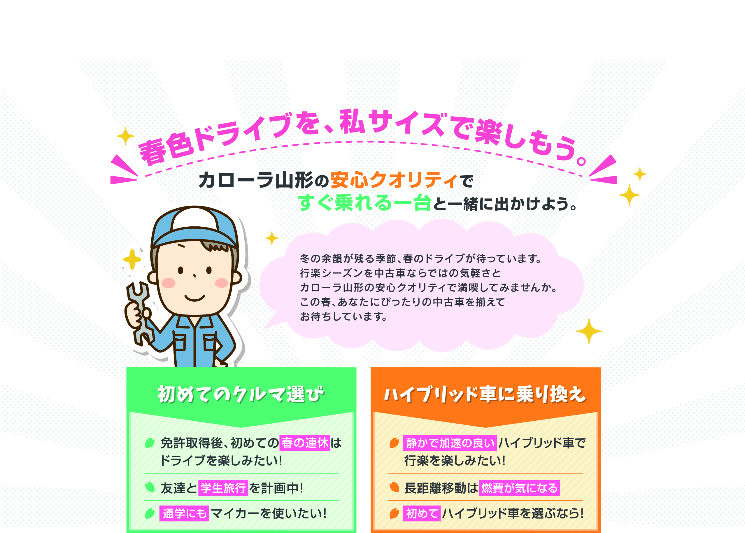 お近くのカローラ山形のお店にお気軽にご来店ください!!